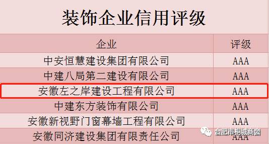 商会常务理事单位安徽左之岸建设工程有限公司荣获“AAA级信用评级”荣誉