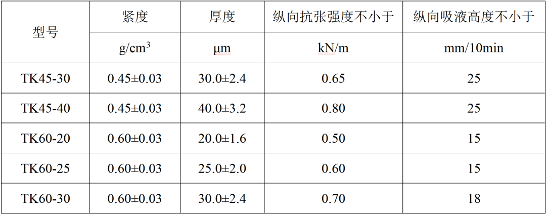 ● 合适的厚度和紧度,吸收性好,降低离子移动阻力;