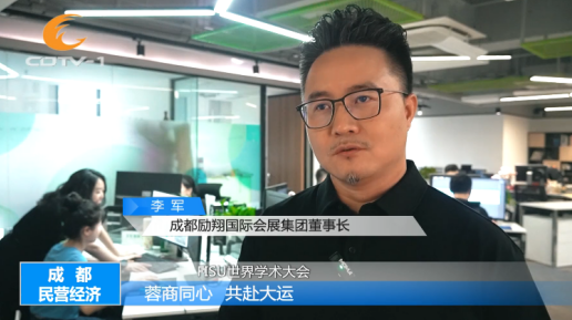 校友李军作为成都励翔国际会展集团董事长、总经理,组建了一只专业能力强、工种配备全的近100人团队,高效率、高质量服务成都大运会。李军表示,成都大运会将为世界青年提供一个追求梦想和相互交流的舞台,能够服务“自家”门口的世界性体育盛会是励翔的荣光,也希望通过创意设计和文化内涵向世界展示成都风采、推广中国文化。