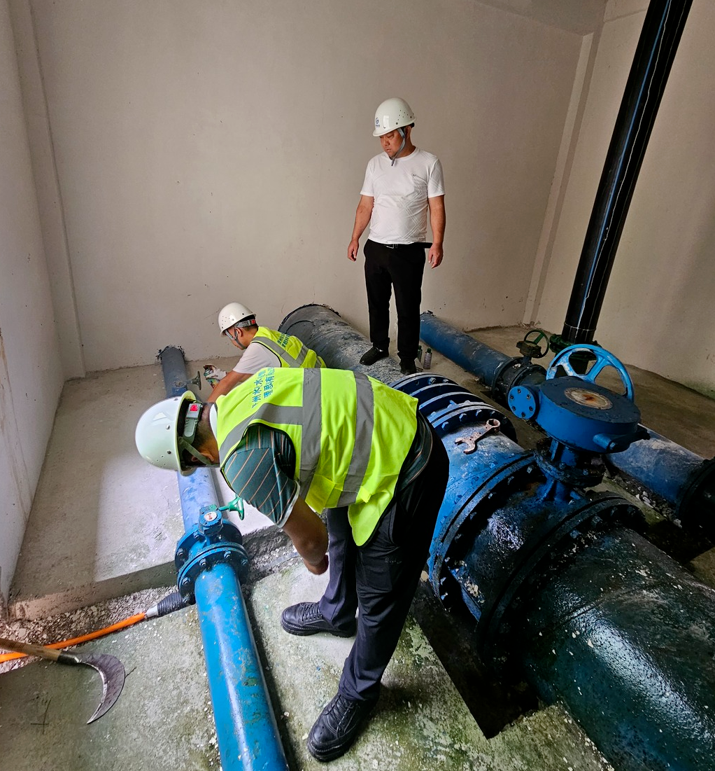 7月26日,思南公司总经理吕刚到任家岭水库现场指导运行管理部人员对设备进行除锈、喷漆等维护保养工作,工会主席兼运行管理部负责人苏小强陪同。