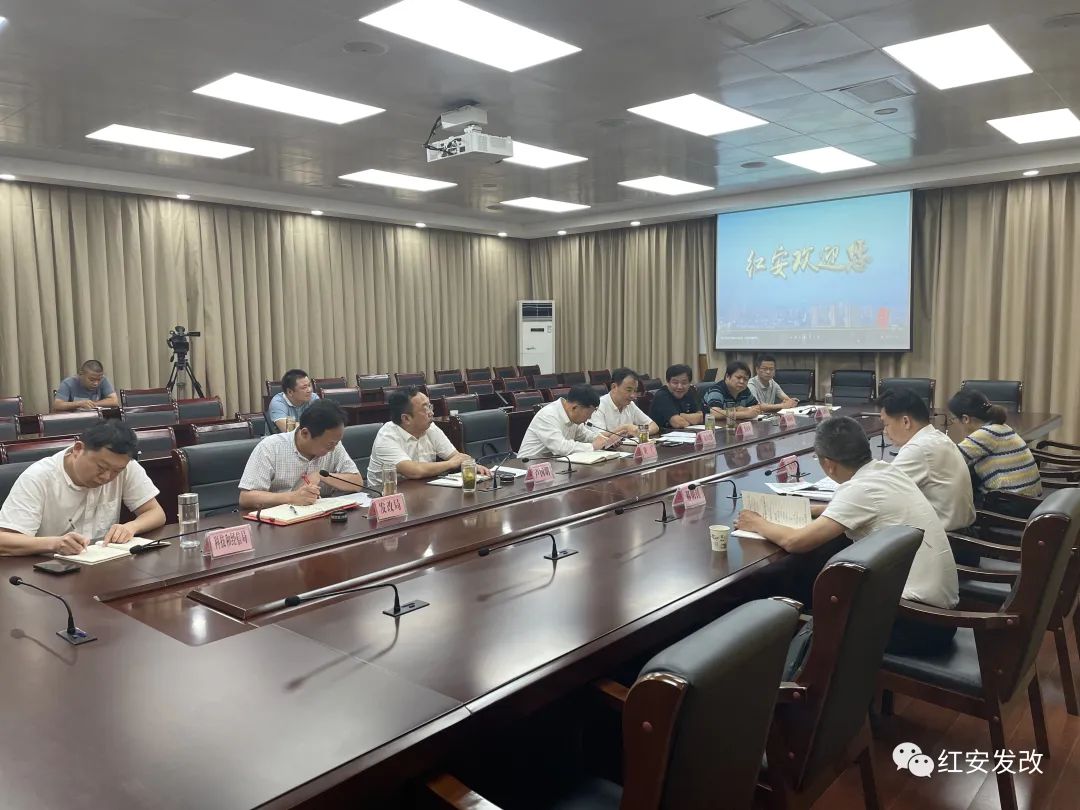 调研组一行上午实地调研了红安力神动力电池系统有限公司、湖北忠和冶金机械制造有限公司、湖北航宇新型材料有限公司、红海产业园,现场听取了各企业负责人的详细汇报。下午在3号会议室,县长胡广、副县长秦良骥、高新区主任卢国明、县三级调研员詹必应,发改局、科经局、招商中心等部门单位与调研组一行召座谈会,会上,双方介绍参会人员、观看《将军故里 传奇红安》宣传片、发改局王雄国同志汇报了军民融合产业基本思路,随后双方交流发言。