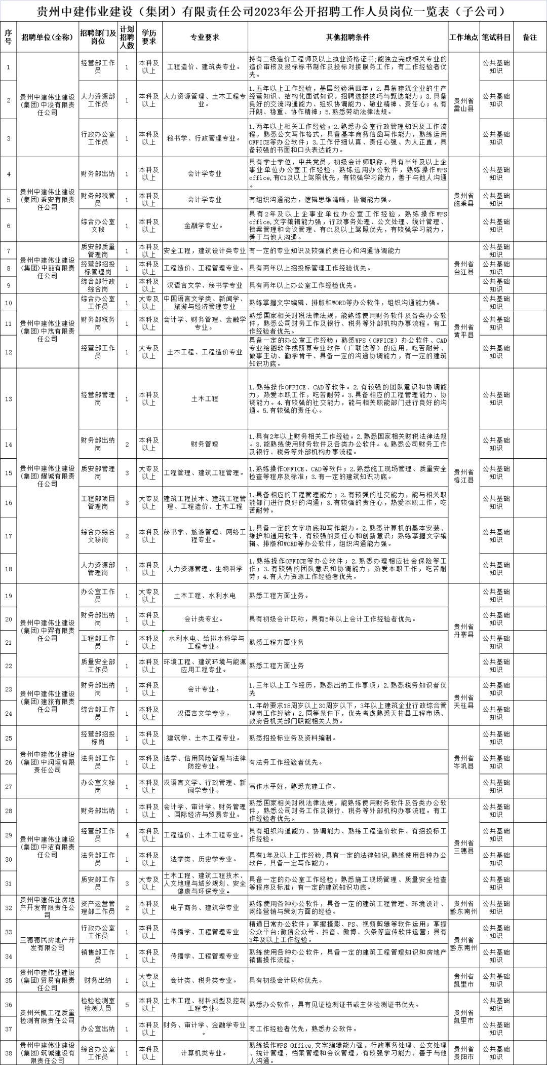 招考单位: 贵州中建伟业建设(集团)有限责任公司
