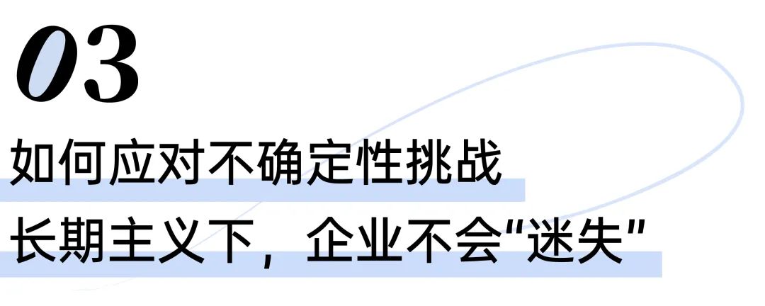 邱昭良博士表示,企业需要一种长期主义,只有这样才会不迷失在复杂性变化的丛林里。所谓长期主义就是到底要在什么样的一个赛道上,若干年之后要干一些什么事儿,这不只是要挣钱,这不只是要获得什么样的一个收入,而是真正的一种使命。