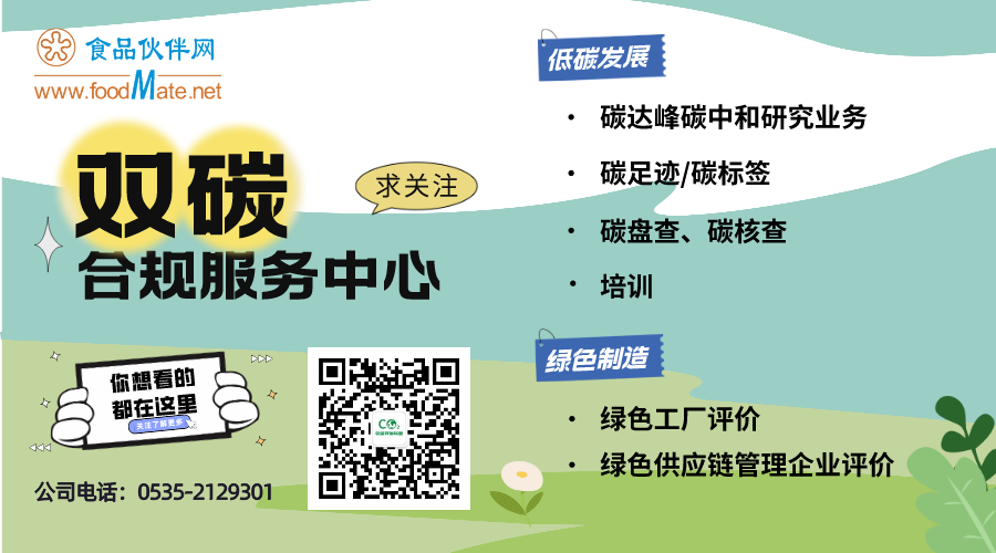 如需企业碳盘查、产品碳足迹核算、绿色制造体系申报等,可联系食品伙伴网