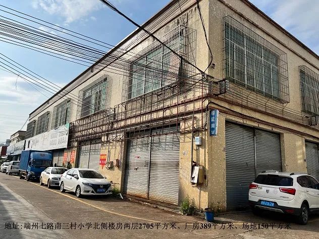 该物业位于肇庆市端州区端州七路南三村小学北侧楼房、厂房、场地,租期15年。物业面积约3244㎡(其中楼房两层2705㎡,厂房389㎡,场地150㎡),交易底价为每月21651.3元。每次报价增幅不低于1000元,价高者得。