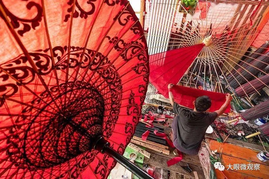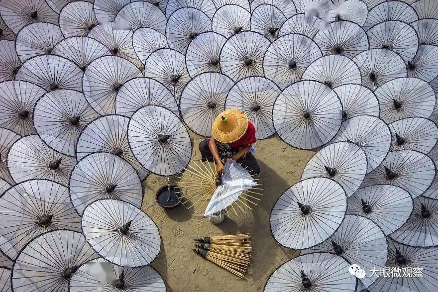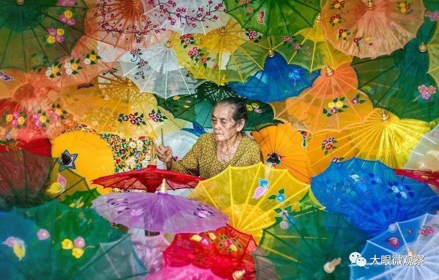 漂亮的花伞,用来歌舞表演,或者只是为了扮靓好看,但是扎花伞的人,更好看。