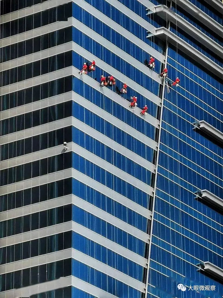 他们需要清洁的是,高楼大厦的外壁,所以他们才是真正的蜘蛛侠,飞檐走壁。