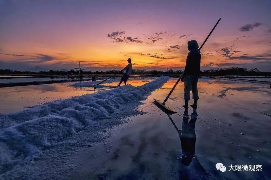 盐厂有很多工作,晒盐是其中一个。除了风吹日晒以外,还算一份简单的工作,就是收入少的可怜。