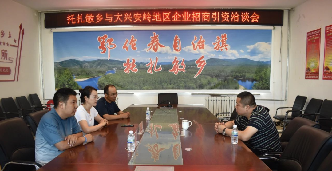 7月28日,托扎敏乡召开与大兴安岭地区企业招商引资洽谈会。政府乡长张爱荣及政府班子成员与大兴安岭企业家就招商引资项目进行洽谈。