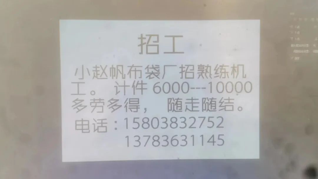 招聘熟练8名,夫妻优先,于寨南头15993097774