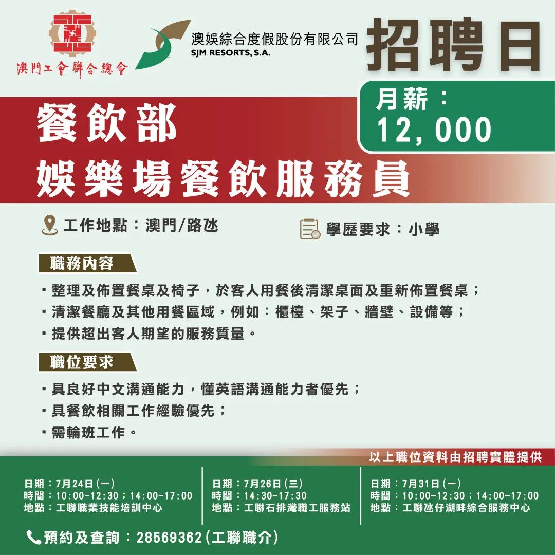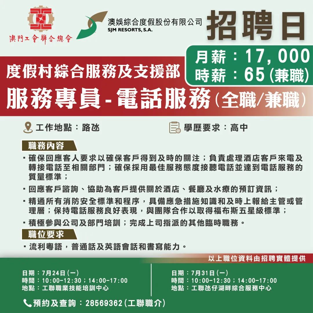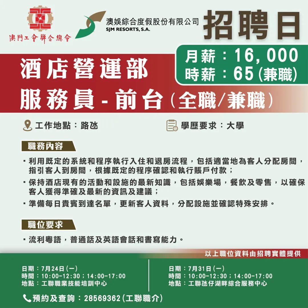 工聯總會就業配對線下平台,接受本澳需要招聘的企業登記配對,並歡迎有人資需求的企業合作,同心推進本地就業市場發展。
