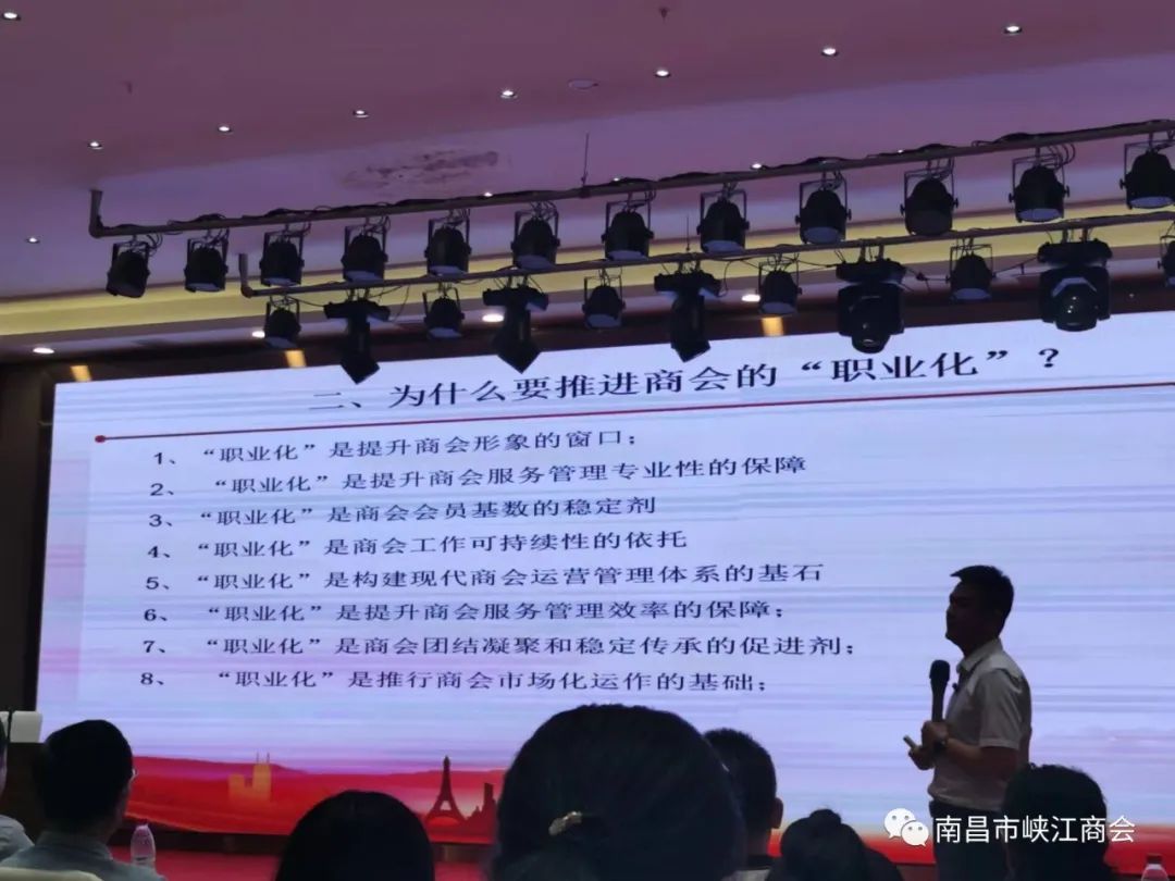 市工商联副主席张晓伟强调:南昌市工商联所属各商会要认真学习领悟全国工商联“四好”商会建设实施办法。注重人才培养,推进商会秘书处专职化。南昌市鄱阳商会秘书长徐胜平详细讲解分析了商会秘书长为什么要专职,未来商会秘书长职业化建设的发展进程。