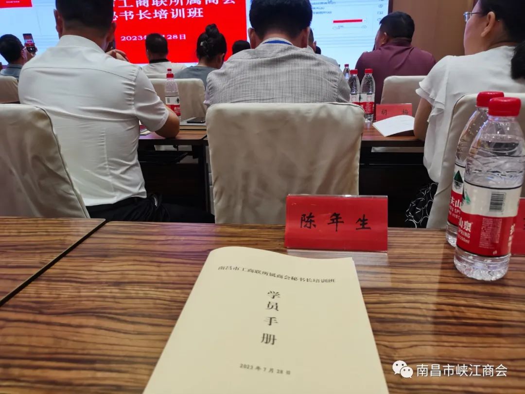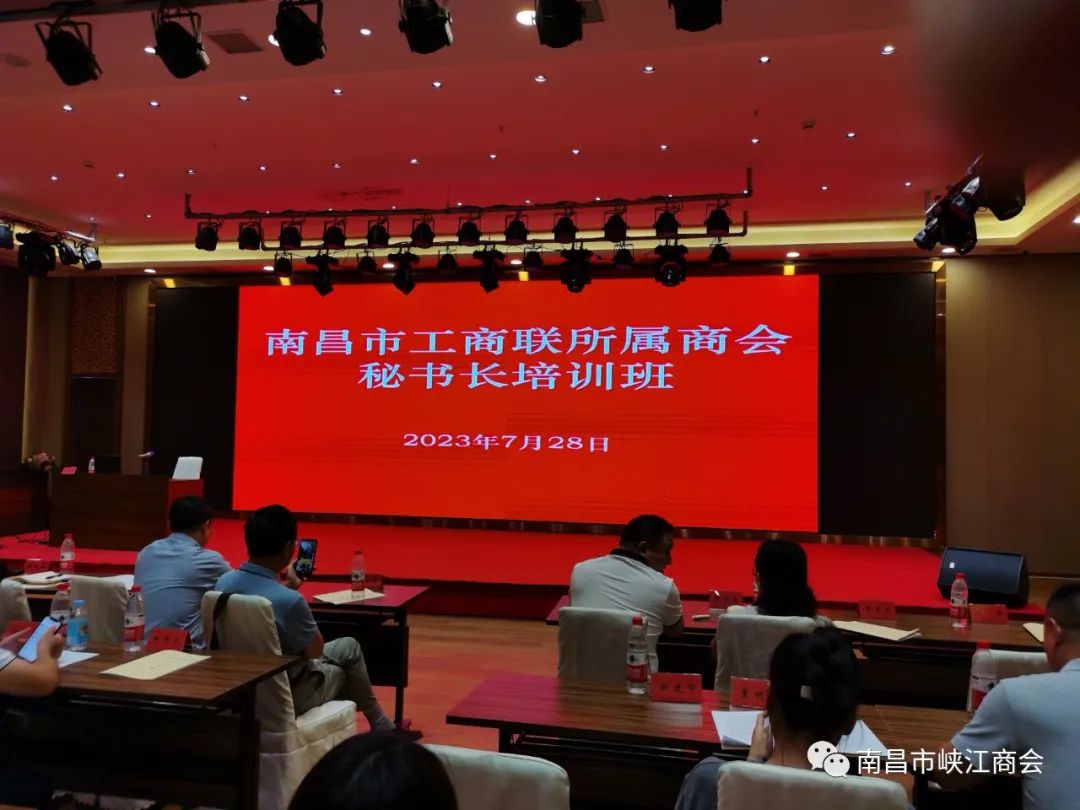 7月28日,南昌市工商联在桔子水晶酒店18楼会议室举办所属商会秘书长培训班。省工商联会员处四级调研员刘春春处长、市工商联党组成员、副主席张晓伟、市民政局社团管理科四级主任科员熊杰、市工商联会员科科长熊伟、市工商联会员科办公室主任吴雯霞等领导同志出席了会议并讲话。全市各商会秘书长100多人参加了培训。我商会执行秘书长陈年生按要求参加了本次为期一天的培训班。