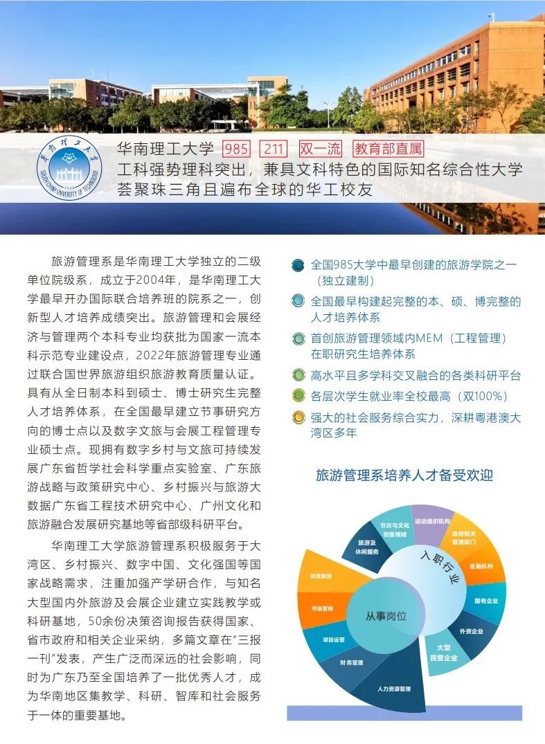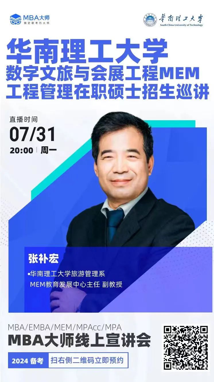 华南理工大学2024年数字文旅与会展工程管理硕士(MEM)招生线上宣讲会