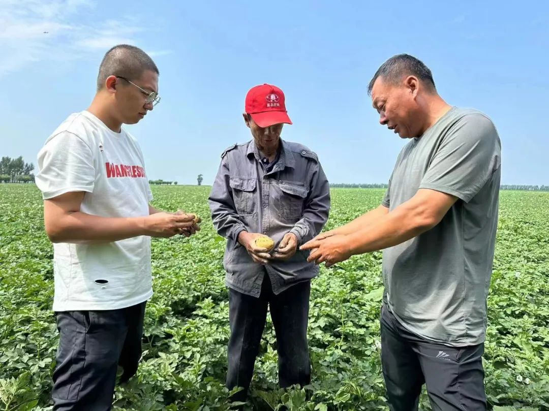 在第1作业队马铃薯地号,技术人员们实地查看了马铃薯生长情况,并摘取“问题”,向种植户逐一讲解马铃薯“病症”,现场开出“处方”,解决了种植户迫在眉睫的技术问题。农业技术人员还给种植户发放了农作物田管手册,引导种植户从会种地到“慧”种地,为农作物丰收丰产奠定坚实基础。