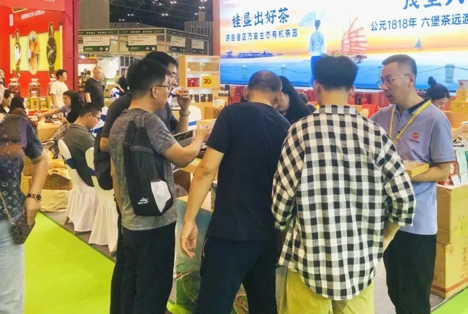 茶业集团的工作人员热情地与客商茶友共品佳茗,交流桂垦茶叶的文化历史,畅谈广西六堡茶的发展前景。