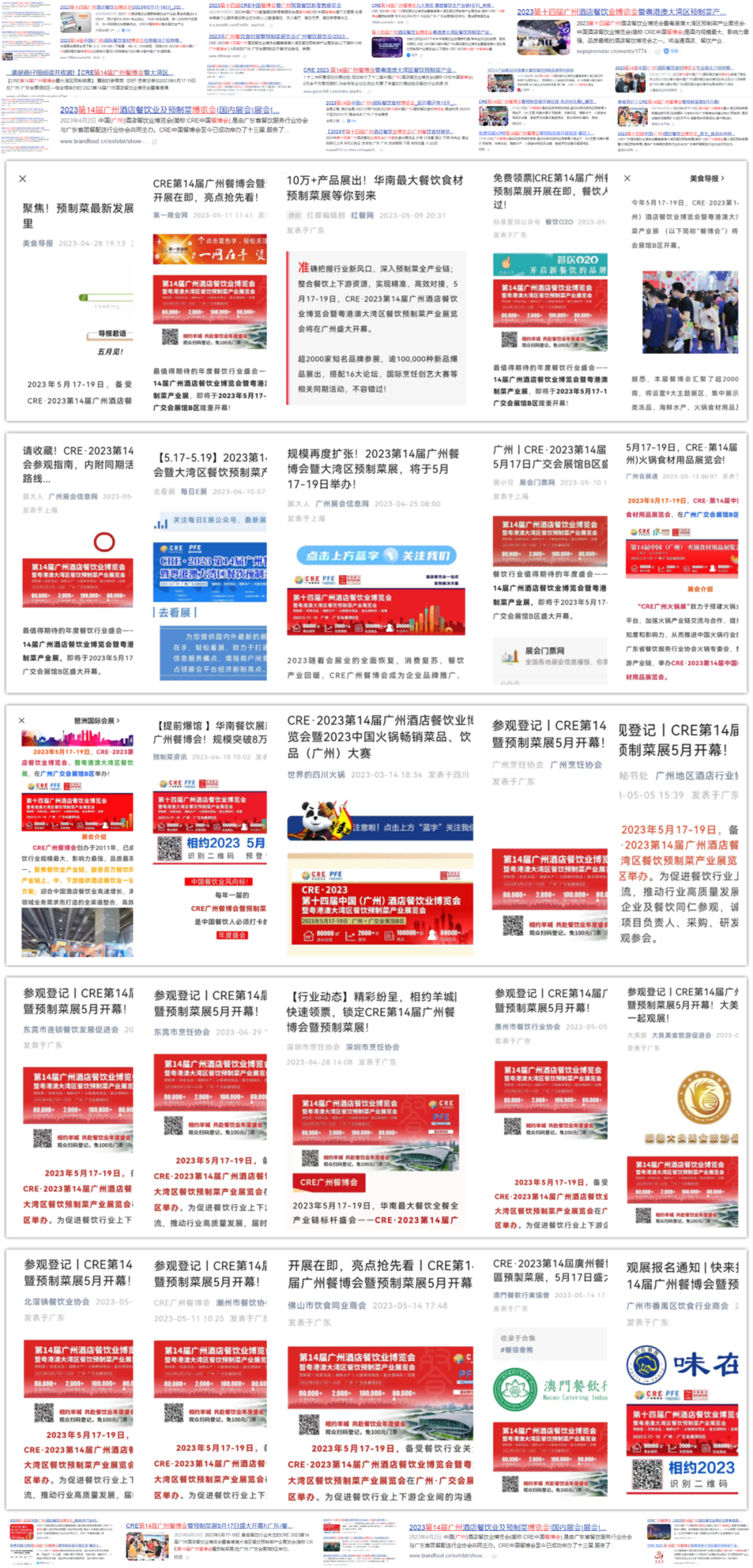 2023年5月17-19日,CRE第14届广州酒店餐饮业博览会暨粤港澳大湾区餐饮预制菜产业展览会在广州·广交会展馆B区圆满落幕,80,000㎡展览面积,汇聚近2,000个品牌展商,开展30余场次内容丰富、形式多样行业的论坛、颁奖典礼、精彩比赛、考察活动等,场场爆满,共吸引126,890余位专业观众到场。其展览规模、采购商人数等均为历届CRE广州餐博会之最!