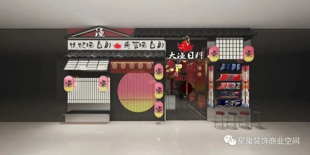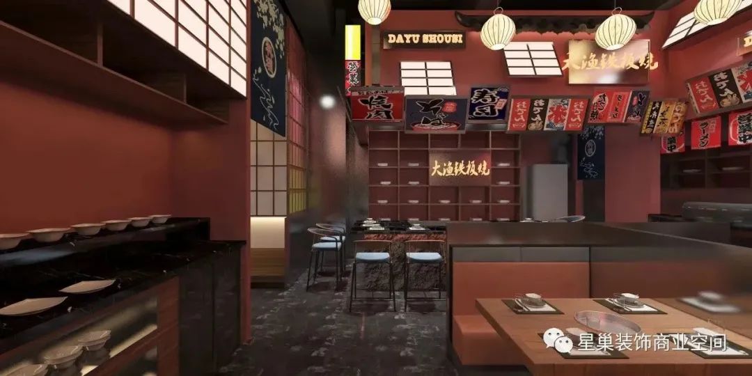 面对日料市场发展的新趋势,星巢捕捉日料店的经典风格和现代情感汇合的元素,从市场潮流中萃取出了大渔寿司。