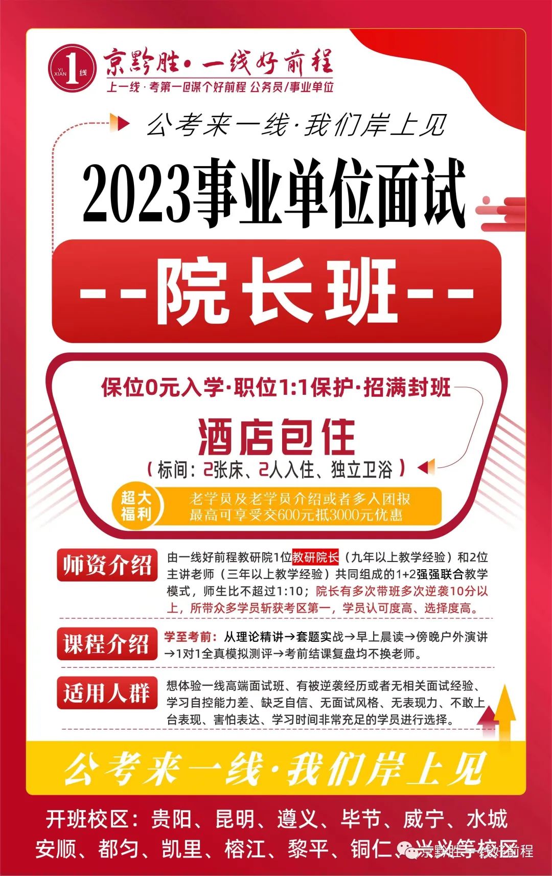 由一线好前程教育集团面试教研院1位教研校长(七年以上授课经验)和2位主讲老师(三年以上授课经验)共同组成的1+2三师强强联合教学模式,师生比不超过1:12-15;逆袭学员多、保位学员稳定、课程性价比较高、课程长度适宜。