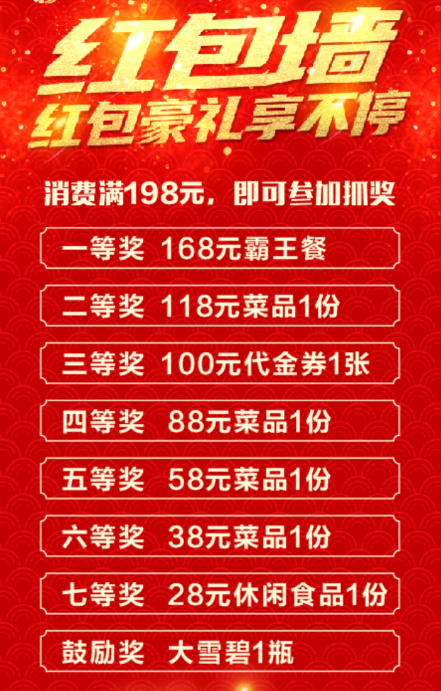 顾客消费满198元,即可参加抓奖