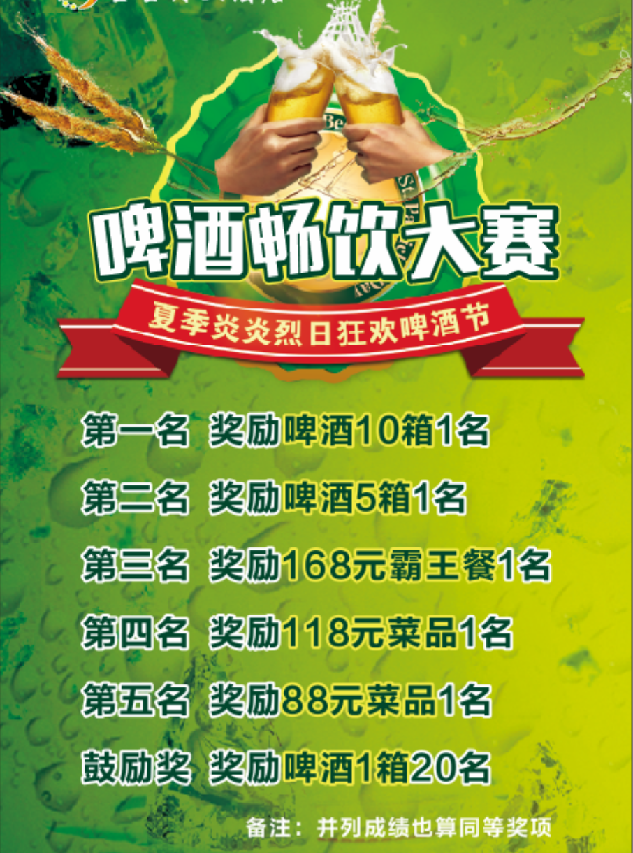 每天一场啤酒大赛(前一周)一天一场,