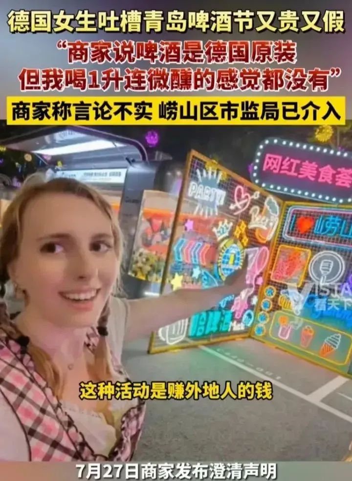 德国女子称:青岛啤酒节让我失望透顶,因为我在德国对当地的啤酒还是有一定的了解和消费!