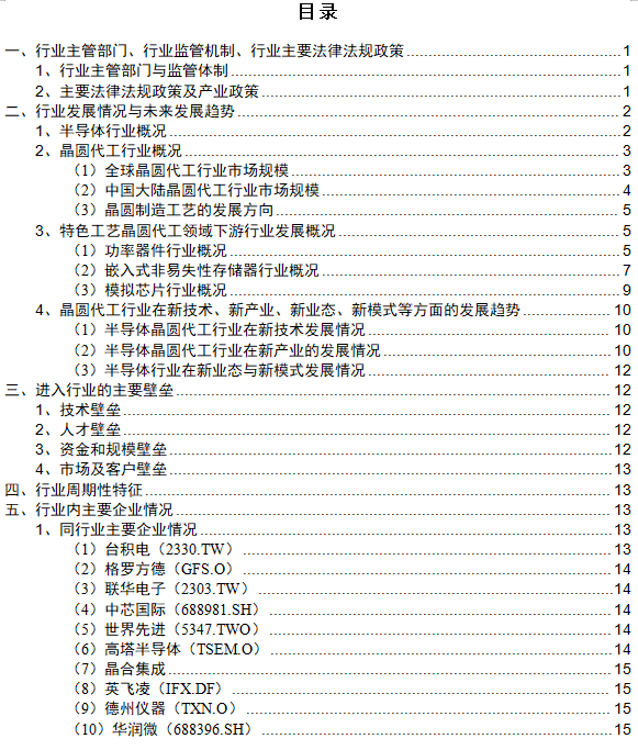 《半导体晶圆代工行业深度报告:监管政策、市场状况、未来趋势、主要企业》深度报告原文WORD版:请关注公众号并回复“jy”获取下载链接。