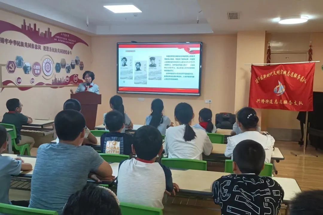 2023年7月27日上午,江苏省辽宁商会应邀出席驻地南京建邺区苍山路社区举办的“老少心向党,奋进新征程”第六期主题教育活动,迎接八一建军节,纪念抗美援朝战争胜利70周年,推动主题教育向深走实。商会副会长单位、南京广林文化传媒有限公司总经理陈程,支部委员、执行秘书长王平、秘书李清等与社区领导、党员、退役军人、青少年及军属代表50余人参加了活动。