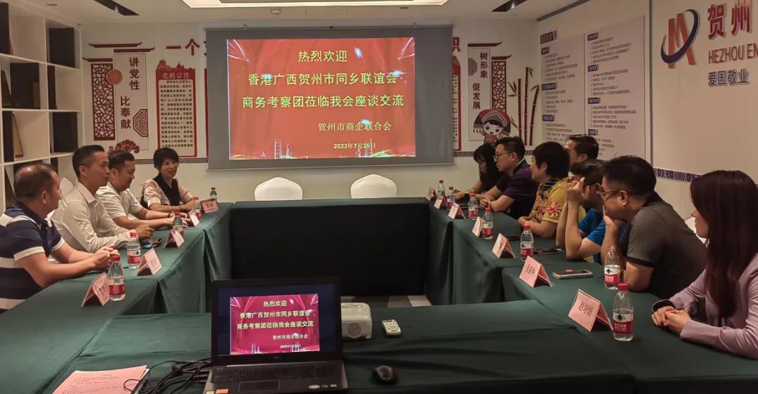 2023年7月26日 ,香港广西贺州市同乡联谊会商务考察团莅临我会座谈交流。港方考察团成员有:广西壮族自治区政协委员、 香港广西贺州市同乡联谊会永远会长胡玉贞,常务副会长李家良,副会长莫宏翰、吴易钟、陈志坚、陶淳颍 ,副秘书长赵培烜等人参与。我会会长程满榜、常务副会长胡国容、副会长谢照钢、覃娟等人参加座谈。