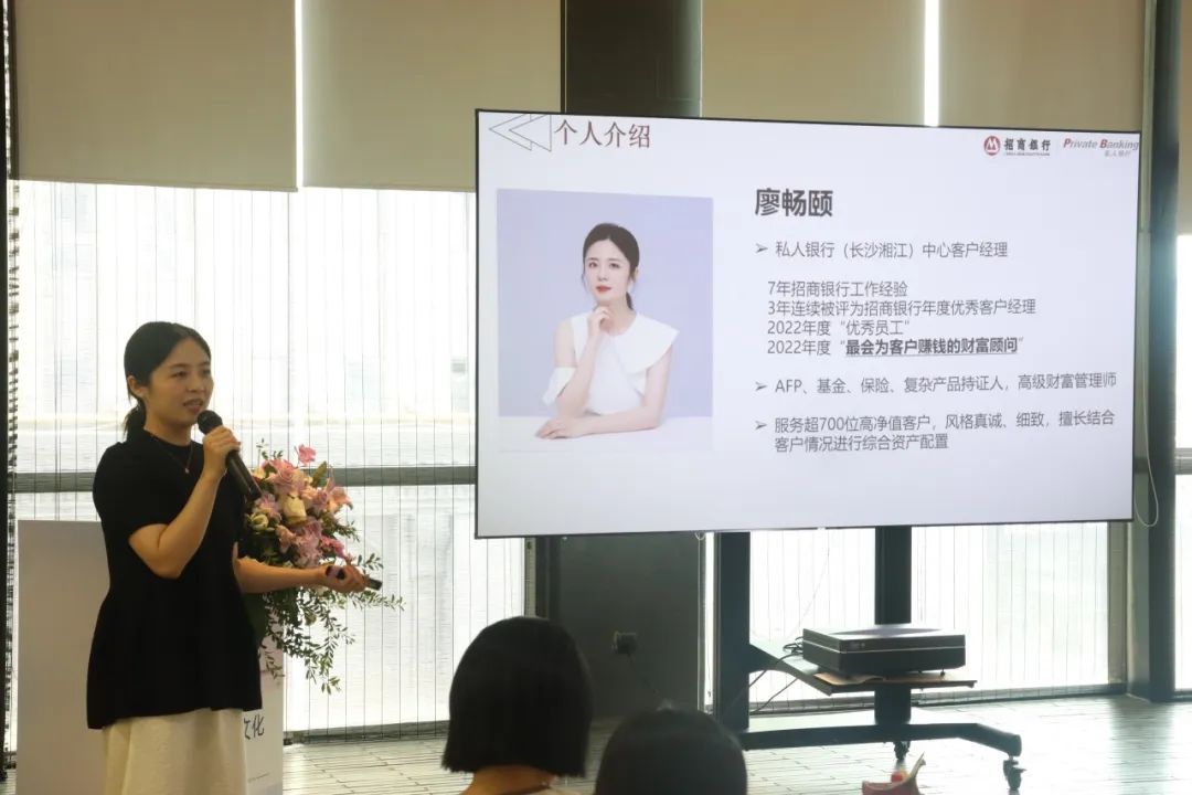 招商银行私人银行中心客户经理廖畅颐发表致辞。她强调银行“以客户为中心,为客户创造价值”的核心价值观,表示银行将坚持推进零售金融、公司金融、投行与金融市场、财富管理与资产管理四大业务板块协同发展,做强做好重资本业务,做优做大轻资本业务,强化已有优势,打造新的马利克曲线,开创高质量发展新局面。