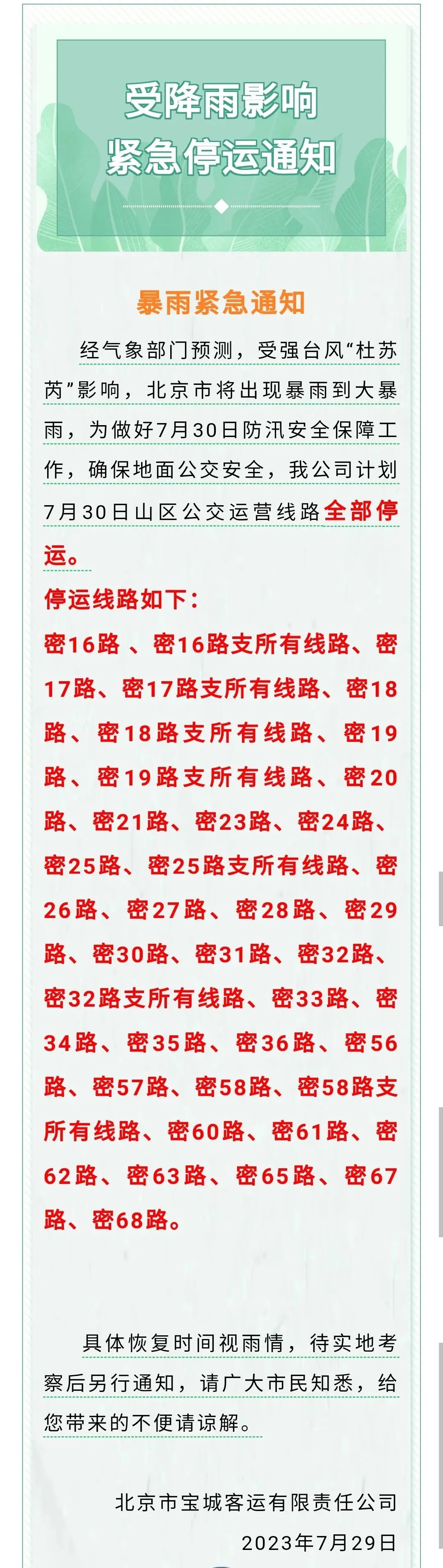 受暴雨影响——宝城公司山区线路7月30日停运紧急通知