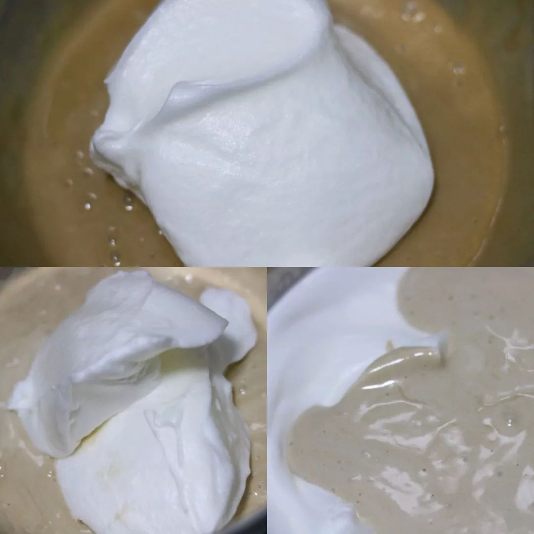 蛋白分三次加入蛋黄糊中翻拌均匀;