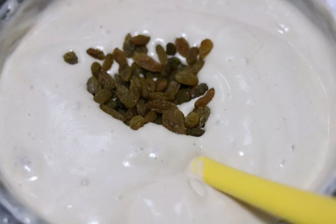加入一把葡萄干,轻轻翻拌一下;