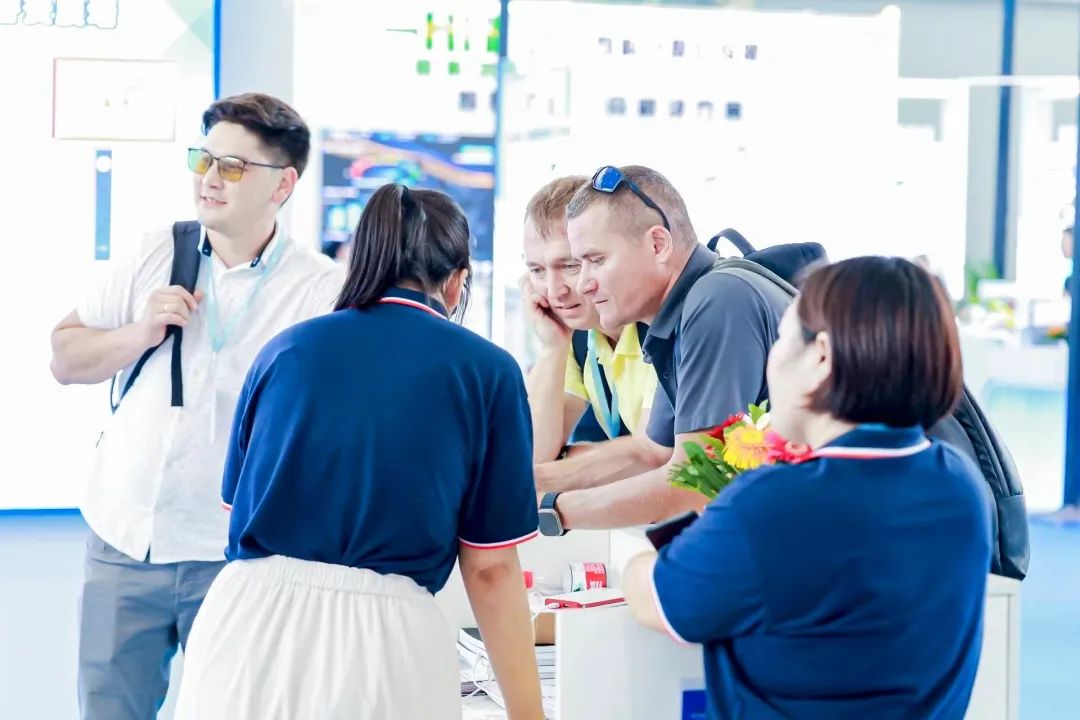 今日,来自全球多个国家的展商来到CIME2023,在展位交流观摩。为帮助海外买家快速回归中国市场,会务组用心搭建桥梁,与企业面对面的洽谈与商贸配对,为展商创造更多贸易机会。