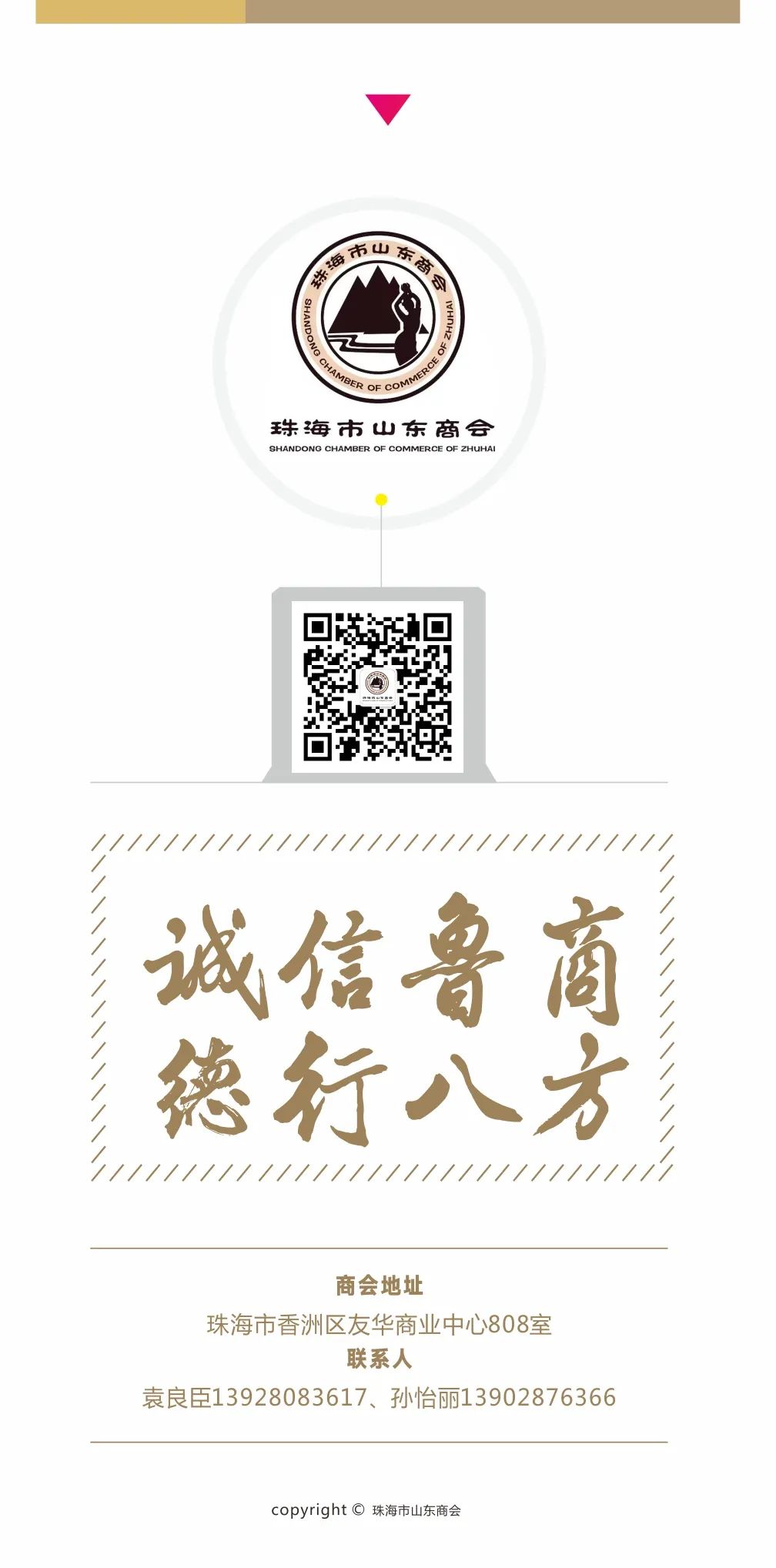 刘副主任还从以下几方面做了总结指导:1、商会党建引领放在首位,充分发挥了战斗堡垒作用;2、商会理监事会领导班子凝聚力强、团结和谐、保证了商会健康发展;3、商会会领导和会员企业都有回报家乡的情怀,会长带头回家乡投资,为家乡经济发展、公益事业、招商服务等贡献力量,非常可贵;4、商会为珠海的山东企业提供服务,密切企业与政府的联系,维护珠海山东企业的合法权益,引导会员企业守法经营、自觉维护正常的市场经济秩序。5、在目前经济情况下,期盼各位企业家克服困难、树立积极的信心,赢取更好的业绩。刘副主任同时表示:感谢大家对调研工作的支持,欢迎大家到办事处来交流沟通。希望商会能够结合自身工作,将齐鲁文化、山东好品等在大湾区做好展示,共同努力把商会区域优势转化为助推山东高质量发展的效能。
