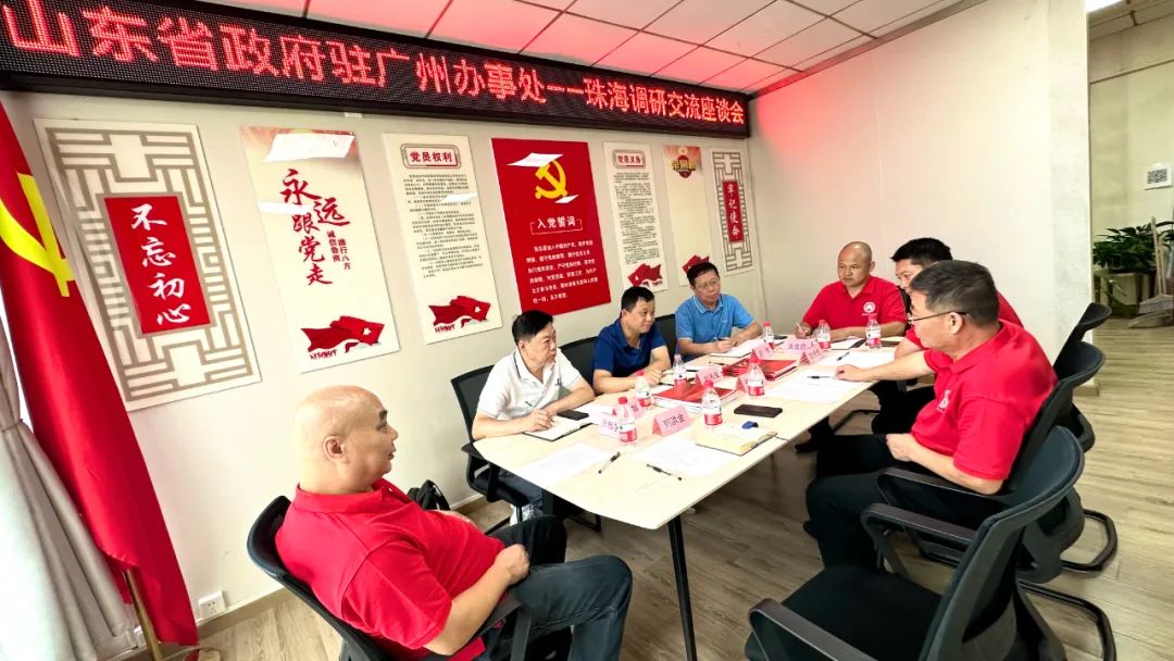 2023年7月27日:山东省政府驻广州办事处副主任刘风俊莅临商会开展调研交流座谈会,同时到场的还有办事处社会工作服务处处长张旭,办事处办公室主任王锋;商会党支部书记兼会长郑末晶,轮值会长范成进,党支部副书记郭洪金,理事亓桂学,秘书长袁良臣参加了座谈。