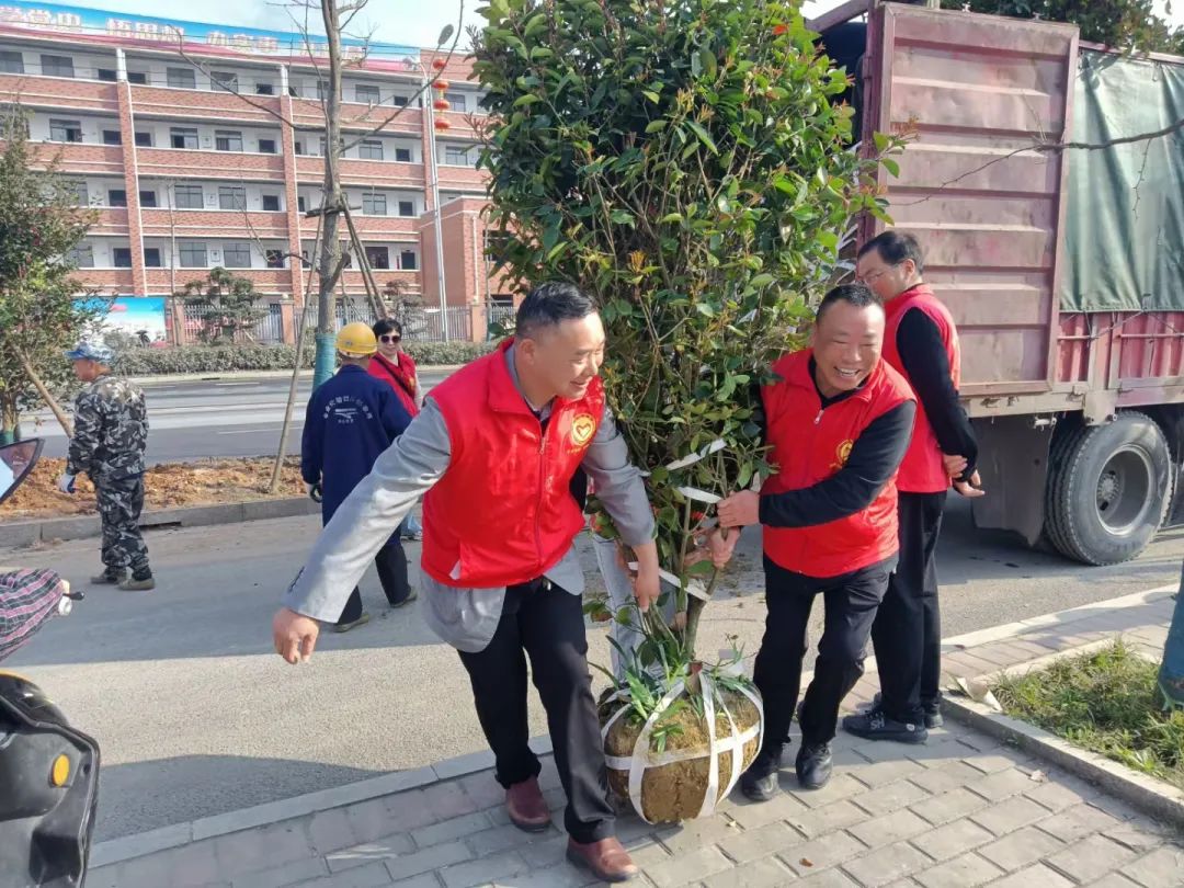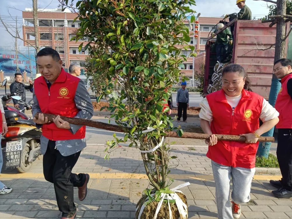 植树活动中,大家配合默契,挥锹铲土、抬树入坑、盖土压实,忙得不亦乐乎。看到亲手栽种的一棵棵树木错落有致、迎风挺立,劳动的快乐也绽放在每一位商会志愿者的脸上。