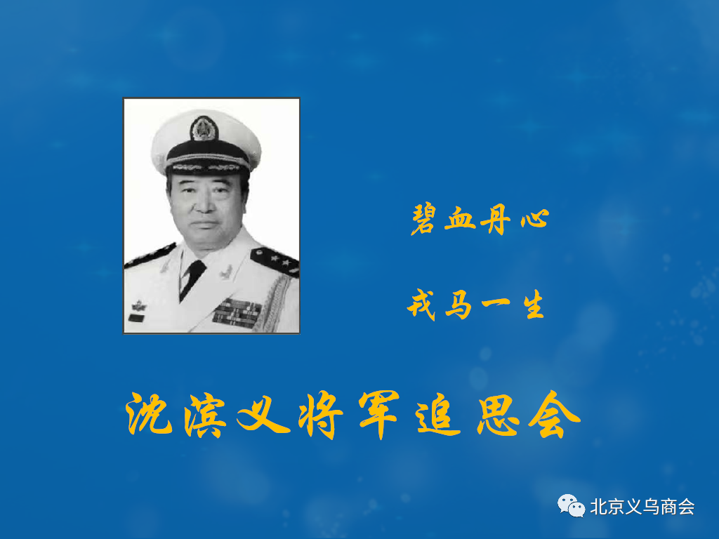 追思会上,大家回顾了沈滨义将军从20岁参军以来,60年戎马生涯,从一名士兵成长为我军高级将领~中将副司令。60年间沈司令为党为军队为人民做了大量的工作,其中有许多可歌可泣的感人事迹。特别是在服务家乡建设方面,可以说是义乌人中属第一。北京义乌企业商会成立之初,沈司令就受邀担任商会顾问,并积极支持商会的工作,关心商会的发展。