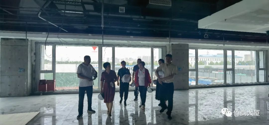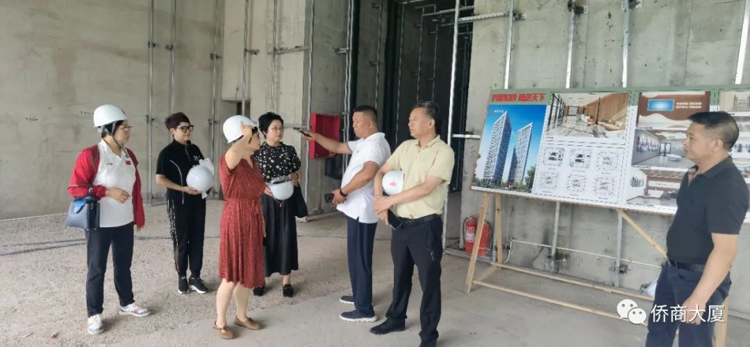 几位领导及会长参观考察了侨商大厦的项目现场以及施工人员的相关业务水平,了解了侨商大厦的被动式建筑原理、六恒四集等优势,还登楼查看了侨商大厦二层、三层的员工食堂、健身房、云智能共享会议室等配套设施的建设情况。他们不仅对侨商大厦的“节能、智慧、健康、服务”的理念表示认同和赞许,还对项目飞速的建设速度进行了充分肯定。