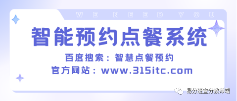 百度搜索:智慧点餐预约系统 官方网址:www.315itc.com