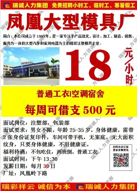深圳市瑞诚劳务派遣有限公司成立于2005年10月,是一家致力于资源开发、供应管理、人才交流的专业机构,公司团队有16年的人力资源服务经验。公司服务范围主要集中于深圳,东莞及周边地区,涉及电子、玩具、塑胶、五金等工厂,公司始终坚持“以人为本,以信誉为发展”的服务宗旨。