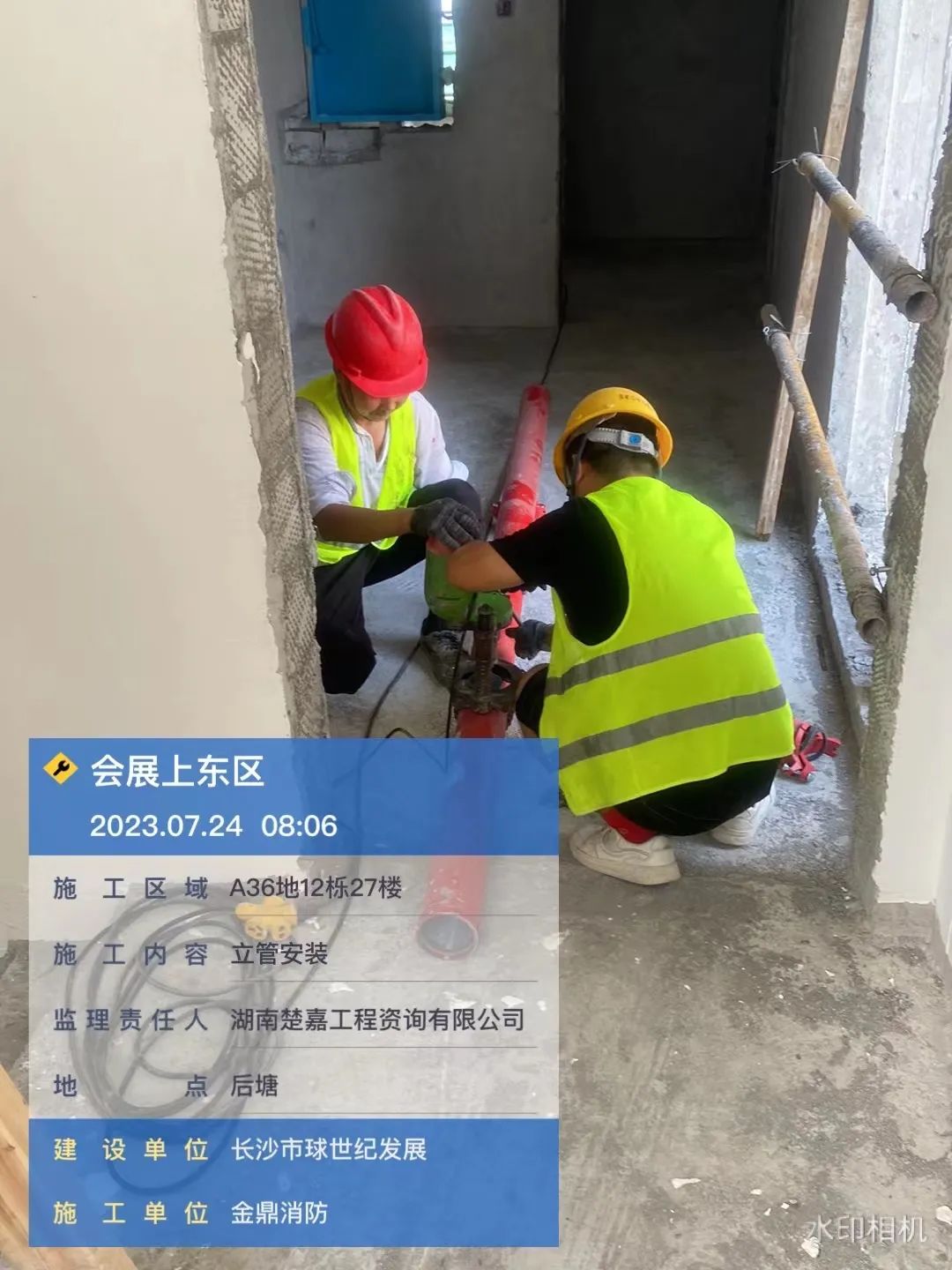 地下室及主楼消防立管施工。