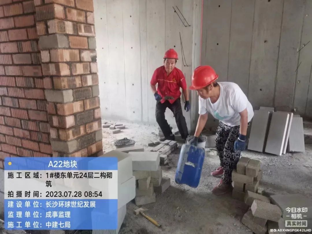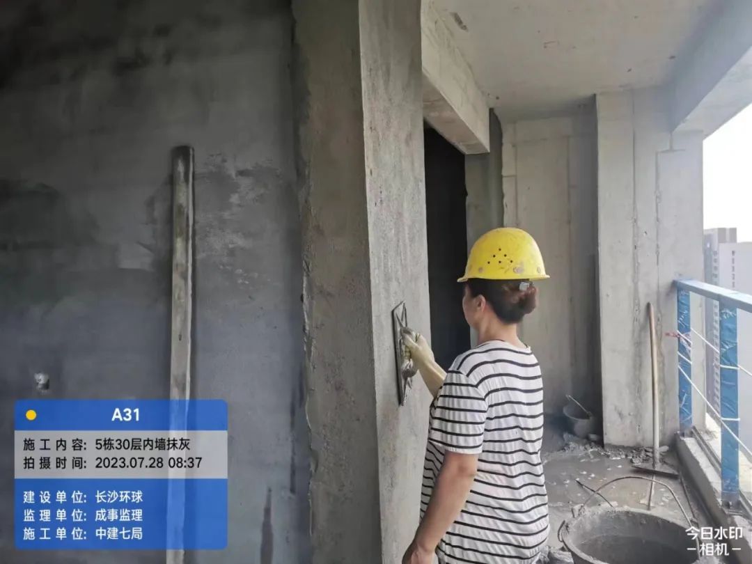 10#栋砌筑完成40层,ALC隔墙安装至40层,户内腻子施工;11#栋楼梯间腻子施工,12#栋户内抗裂砂浆施工。