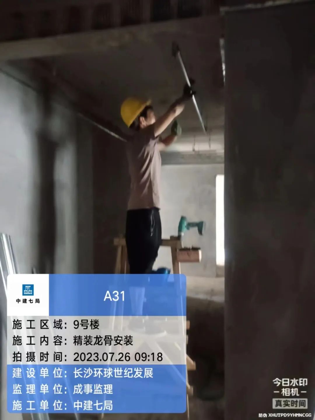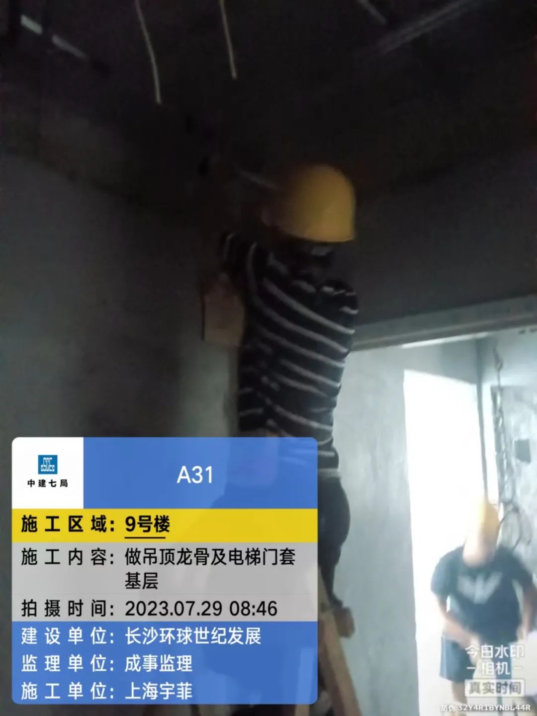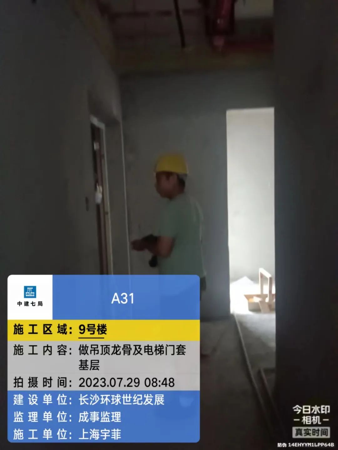 9#栋公区精装电梯层面封闭及吊杆安装。