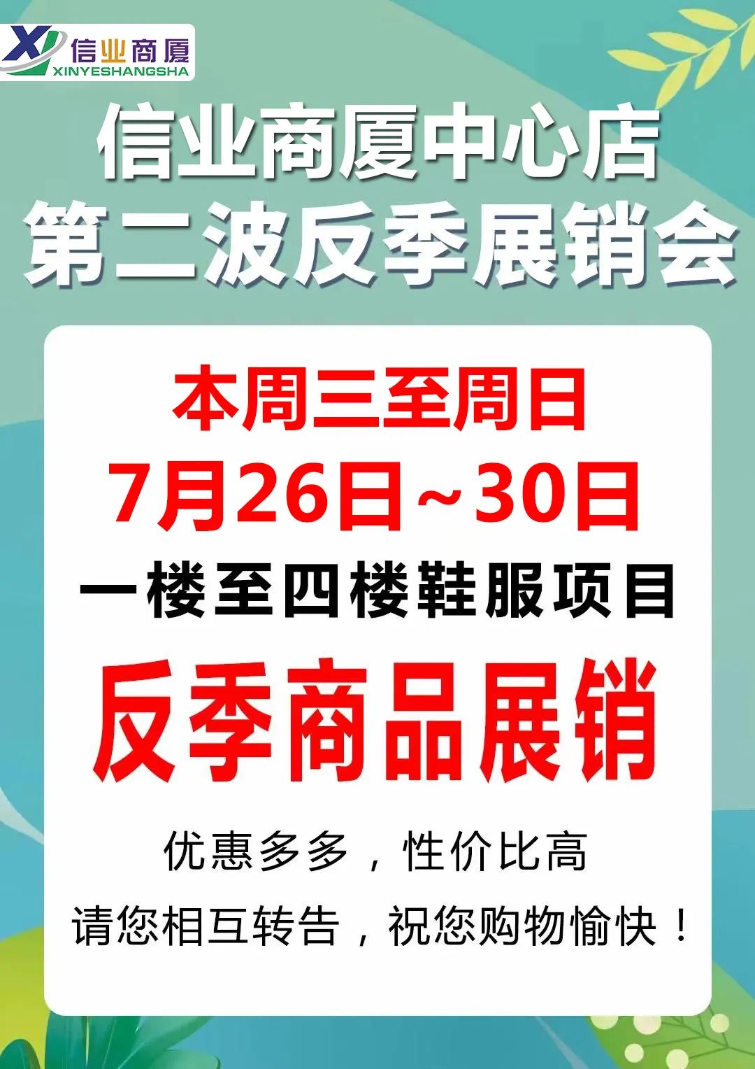 【肥城信业商厦中心店】第二波反季展销会,最后一天,千万不要错过啦~