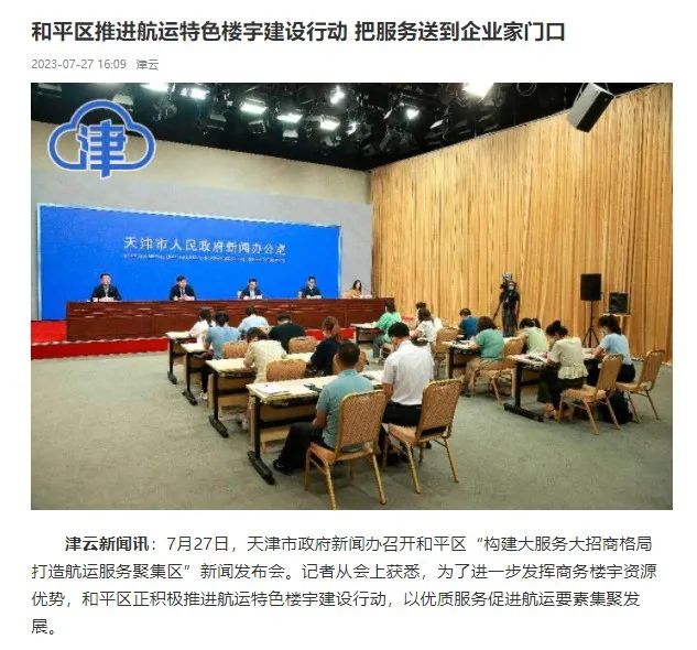 和平区推进航运特色楼宇建设行动 把服务送到企业家门口