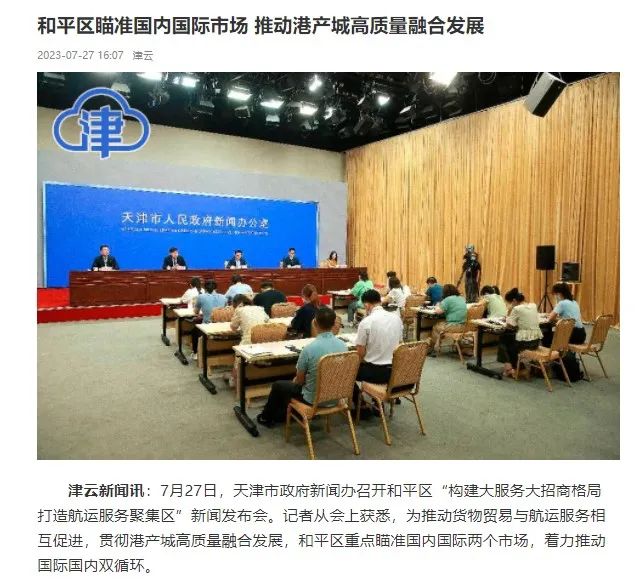 和平区构建大服务大招商格局 打造航运服务聚集区