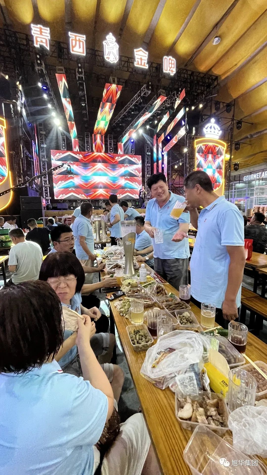 7月30日,适逢周末。为缓解半年来大家工作的压力,公司组织中层以上干部驱车前往青岛金沙滩啤酒节现场。大家一扫平日的紧张与疲倦,炫彩的灯光、清爽的啤酒、来自五湖四海的宾客尽收眼底,翻滚着旭华人的激情。此刻,我们满怀欣喜,举杯痛饮,为日益壮大的企业干杯,为上半年接踵而至的战报干杯,为充满希望的明天干杯!