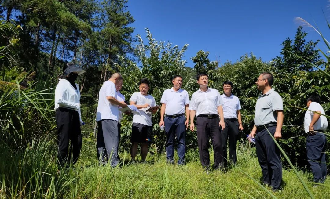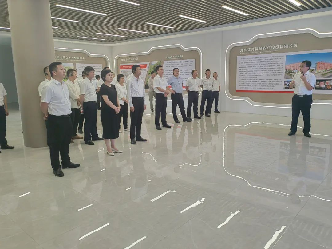 黄冈师范学院校党委书记陈向军一行到集团农投科技公司农业智慧园调研政府平台公司支持农业产业发展情况,县委副书记、政法委书记王波陪同,集团董事长杨天平现场介绍相关情况。