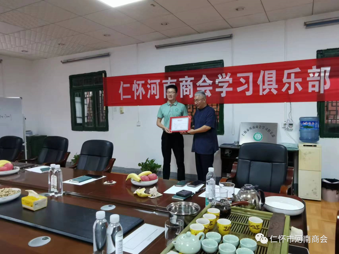 2023年7月29日,仁怀市河南商会,为学习俱乐部颁发证书,负责人;赵冲,茅渡酒厂总经理,受邀到茅渡酒厂办公楼,举办第一次学习活动。参加有;宋昱庆会长,赵冲部长,刘玉龙副会长,秘书处秘书麓遥,马莉及步赞,王紫阳等会员。